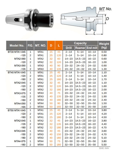 | Tamaño del adaptador | Cono morse 2 |