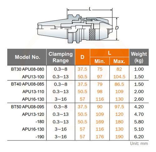 Cono Portal Mandril Bt50 De Ø1 A 16 Mm Largo 190 Mm M16