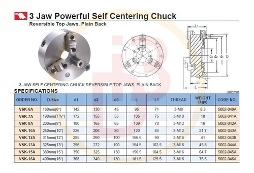 + Plato de 3 Mordazas Autocentrante Reversible VERTEX